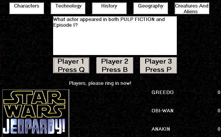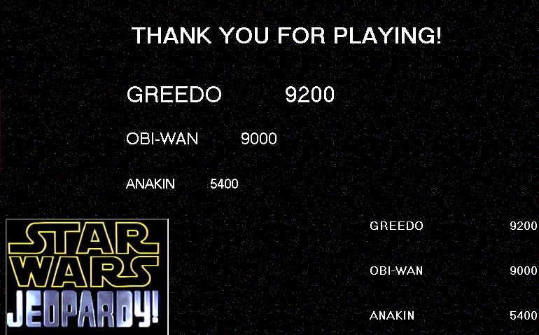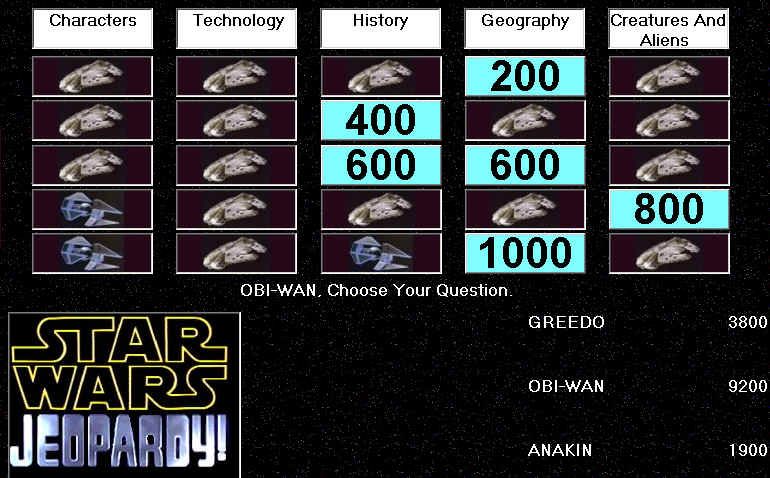 The question categories range from “Jedi Philosophy” to “Galactic Geography,” ensuring that both casual fans and lore experts find challenges tailored to their interests. The pacing is smooth: the first Jeopardy round eases players in with moderate-difficulty queries, Double Jeopardy raises the stakes, and Final Jeopardy offers a last dramatic wager. The Daily Doubles are sprinkled strategically, creating tense moments where a single wager can catapult you into the lead or plunge you into deficit.