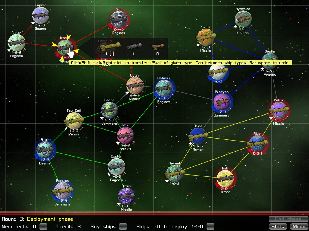 The depth of strategy is amplified by the unique tech modifiers granted by individual planets. A research-rich world might boost your fleet’s shield regeneration, while an industrial hub increases ship production each turn. Properly sequencing your conquests to prioritize planets that complement your playstyle is crucial: do you strike fast and hard on high-value worlds, or slowly build your economy to unleash an unstoppable armada? Watching enemy fleets advance in hotseat or online matches forces you to continually adapt your plan.