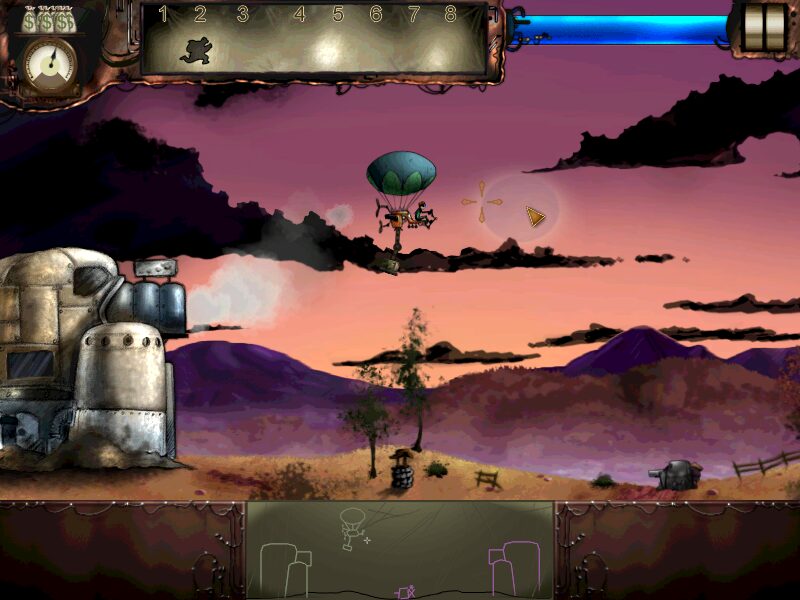 Steam Brigade delivers a tight blend of action and strategy, placing you at the helm of Marshall Mackenzie’s steam-powered airship. Controls are intuitive: you pilot your vessel through 2D side-scrolling battlefields, use a grappling magnet to pick up and drop units, and issue real-time orders that can turn the tide of combat. The core challenge lies in managing your limited resources—primarily money—and dynamically responding to Garr’s forces as they build bunkers, turrets, and factories across the map.