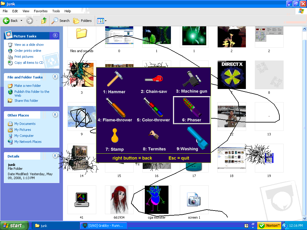 Each tool in your destructive arsenal brings its own unique flair and interactions. The termite option creeps across the surface, silently devouring your desktop one byte at a time, while the water gun splashes harmlessly at first before turning the entire interface into a soggy mess. These varied mechanics encourage experimentation: watch files crumble under the hammer’s impact, or flood the recycle bin until it overflows and sends icons cascading off the screen.