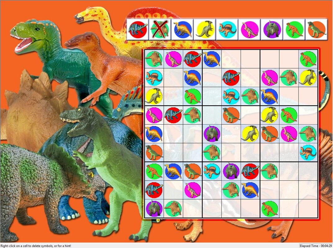 Visually, Sudoku Crunch for Kids! excels in delivering crisp, colorful artwork that appeals directly to its younger players. Each theme boasts unique, high-resolution icons—from cheerful daisies and baseballs to friendly aliens and roaring T-Rexes—rendered in a cartoon style that’s both vibrant and easy to distinguish. The grid itself features clean lines and a gentle color palette that prevents visual fatigue during extended play sessions.