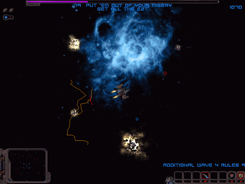 Swarm drops you into the cockpit of the agile T-77, a nimble starfighter armed with twin cannons and a staggering array of explosive devices. From the very first moments, the controls feel tight and responsive, evoking the classic precision of Asteroids while injecting a modern sense of speed. You’ll barrel roll through fields of derelict space debris, dodge swarms of alien organisms, and send mine carts scuttling off into the void—all with that trademark arcade thrill.
