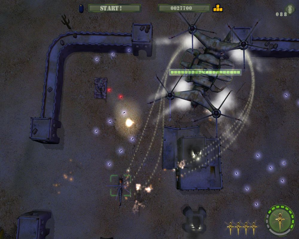 One of the standout features is the two-player co-op mode. Playing side by side, one person controls the helicopter and the other the jeep or boat, creating a cooperative dance of cover fire and coordinated strikes. This synergy is crucial when facing the end-of-level bosses, who demand teamwork, timing, and smart use of your upgraded arsenal. The constant flow of enemies, power-ups, and boss battles makes every stage feel fresh and challenging.