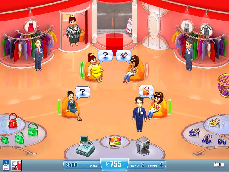 As you progress through levels, you swap the sushi counter for a boutique or a surf shop, each introducing its own mechanics and pacing. In the boutique, you assign assistants to fetch dresses and accessories; in the surf shop, you inflate beach balls and wax boards. Success depends on strategic delegation and prioritization—you’ll often face several simultaneous orders, and choosing which to fulfill first can mean the difference between hitting your goal and a one-way ticket to the boardroom.