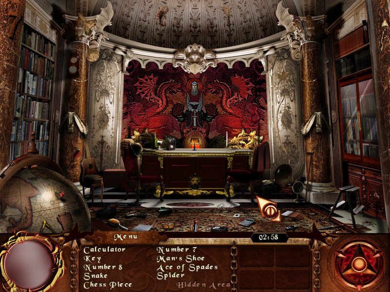 The Dracula Files delivers a familiar yet engaging hidden object experience, tasking players with locating a list of items within richly detailed scenes. The interface is intuitive: a silhouette of the selected object appears in a side mirror, guiding your search without making it too easy. Time limits on each location add a layer of tension, encouraging careful observation and quick thinking to avoid running out of precious seconds.