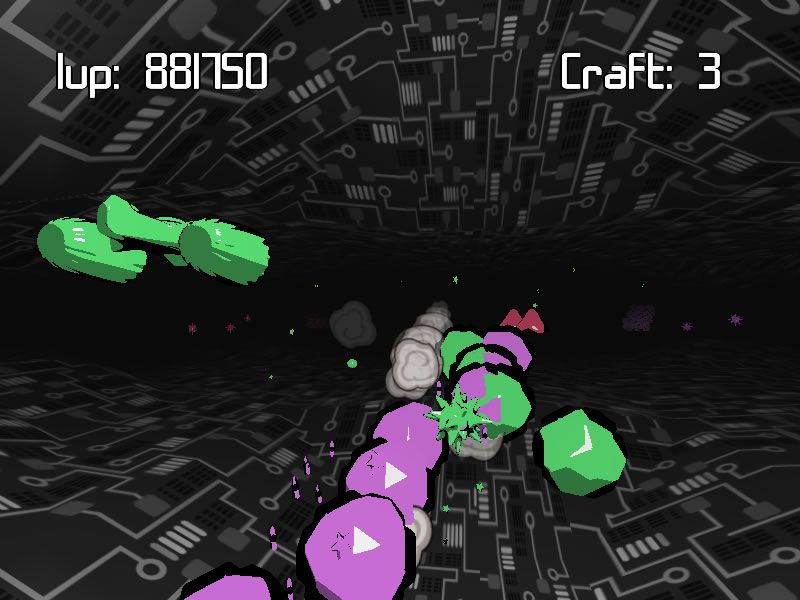 Lighting plays a key role in establishing atmosphere. Pulsing glows from circuit-board walls and rotating data nodes give each stage an otherworldly feel, as though you’re inside a living, breathing PC. Particle effects from explosions and smart bomb detonations are crisp and satisfying, ensuring that your successes look as impactful as they feel.