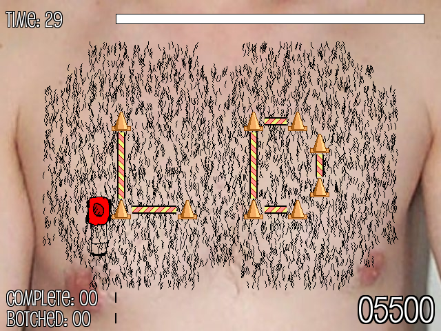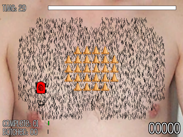 Obstacles are key to the game’s tension. Traffic cones dot the skin like tiny red warnings, while strategically placed sensitive nipples act as high-stakes hazards—bumping into one will cost valuable seconds and accumulate pain-themed penalties. This obstacle-laden layout forces you to plot tight, efficient routes, darting between patches of fur to rake up points without stumbling into trouble.