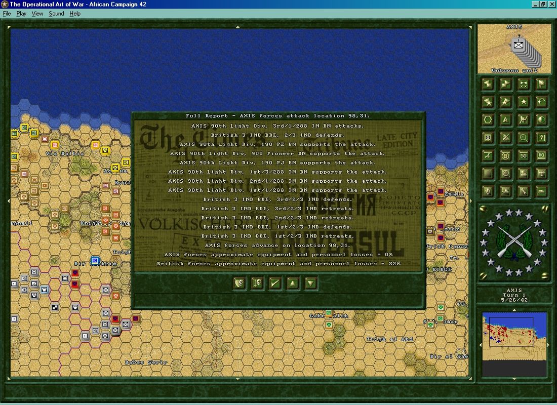 Graphically, Century of Warfare remains faithful to the classic hex-and-counter style of traditional wargames. Unit counters are clearly labeled, color-coded, and convey essential statistics at a glance—attack, defense, movement points, and supply status. While there are no lavish 3D battlefields or cinematic cutscenes, the clean, uncluttered interface ensures that vital information never gets lost amid visual clutter.