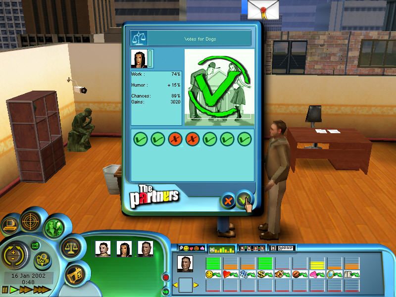 Character dynamics play a central role in gameplay. You start with a roster of pre-designed lawyers, each with defined personalities such as the charismatic playboy partner or the brooding depressive associate. As you complete missions, you unlock new personalities and observe how different temperaments influence case outcomes, office morale, and potential alliances. This social layer adds strategic depth, pushing you to consider not just legal strategy but also interpersonal chemistry.
