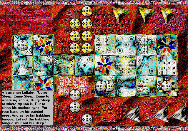 The included help file doubles as a brief digital chronicle, detailing the archaeology of Ur, the game’s spread to India and the Mediterranean, and the significance of rosette symbolism in Mesopotamian art. This background reading feels more like an interactive museum placard than a textbook, offering bite-sized nuggets of information that deepen appreciation for the gameplay mechanics you’re enjoying.