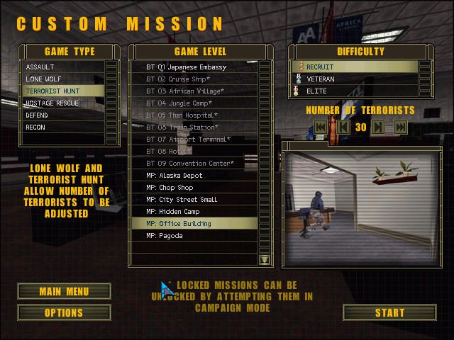 Environments range from abandoned urban sites to heavily fortified compounds. Each locale is detailed with signage, cluttered furniture, and destructible elements that lend authenticity to the roasted-out windows and busted-up doorframes. Model detail on both hostages and terrorists has been refined, making it easier to identify friend from foe even in chaotic fire-fight situations.