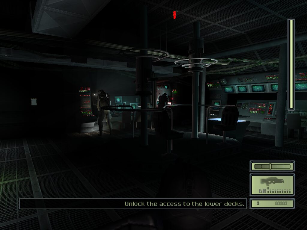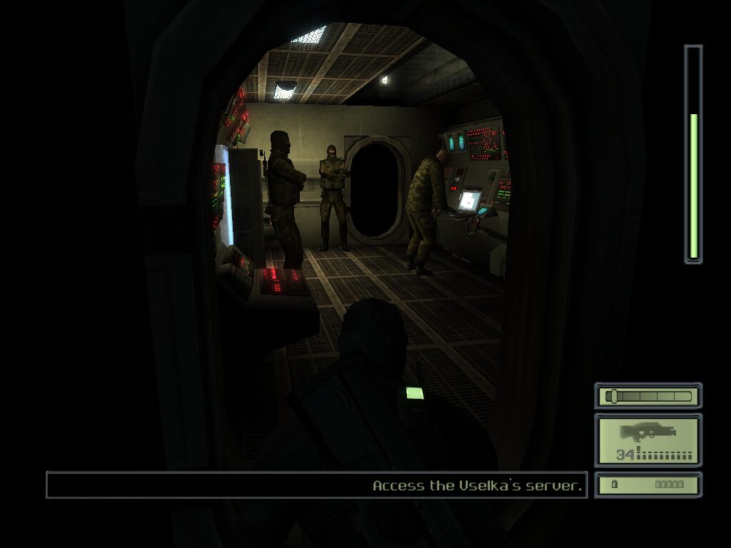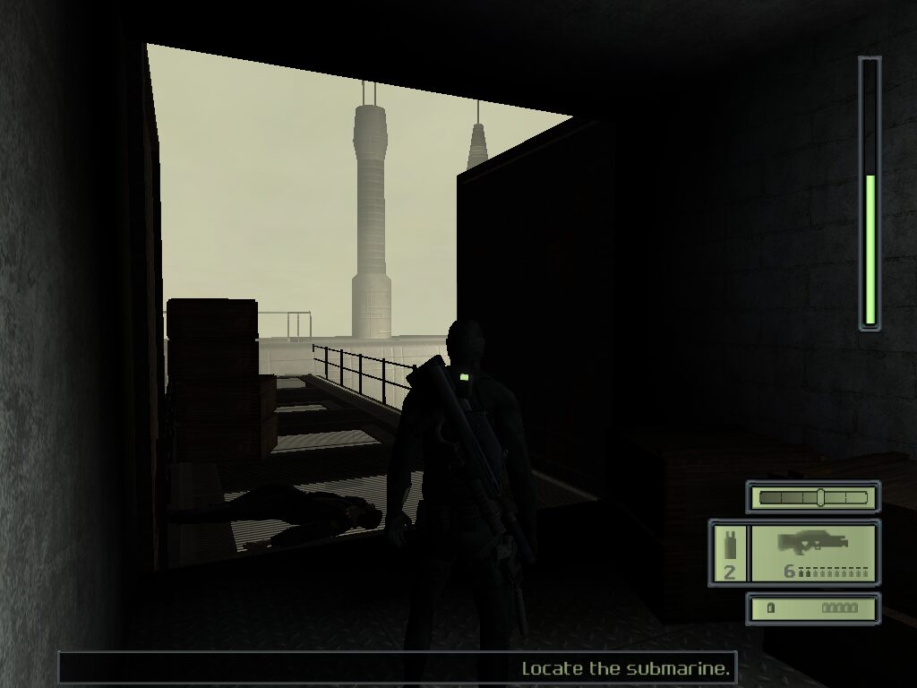 Environmental textures—warehouse crates, submarine interiors, concrete corridors—are rendered with a surprising level of detail for a 2003-era release. You can discern warship control panels’ blinking lights and the scuff marks on military dog tags. Character models exhibit realistic facial features under direct light, though animations can occasionally appear stiff during guard patrols or when reacting to alarms.