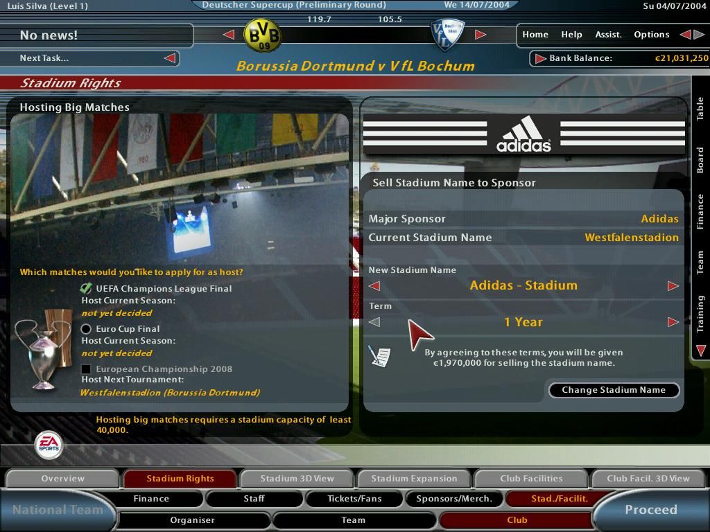 While EA’s signature menu interface carries over largely unchanged from FIFA and earlier TCM titles, the on-pitch visuals receive a noticeable boost. The revamped 3D engine brings more detailed player models, improved stadium textures, and higher-resolution pitch surfaces. Animations are smoother than in TCM 2004, especially when players jockey for position or slide into tackles.