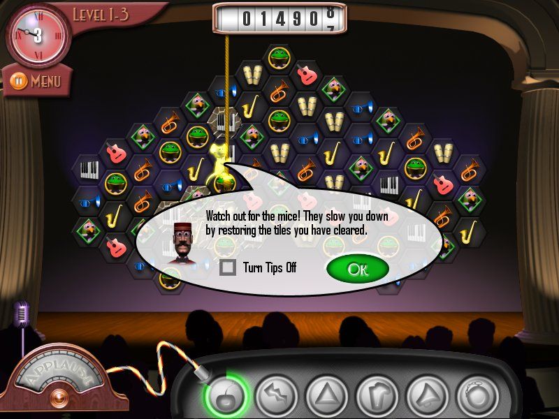 Between levels, you experience the game’s humorous side when mischievous mice invade your performance, attempting to undo your hard work. This little plot device adds personality—your mission isn’t just to clear tiles, but to keep the show on the road and outwit these tiny saboteurs.