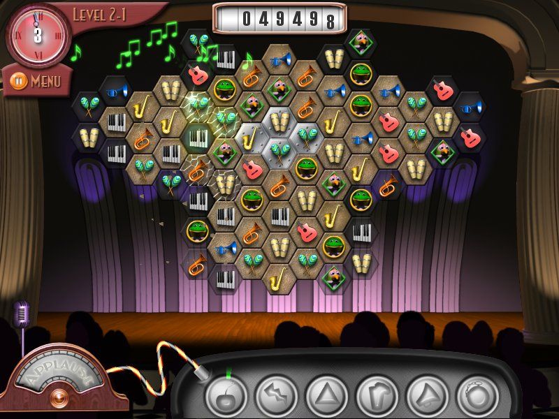 The visual presentation of Tropicabana is bright, colorful, and firmly rooted in its musical theme. Instrument icons—guitars, trumpets, drums—are rendered with clarity, making it easy to spot matches at a glance. Hexagonal slots are distinctly outlined, so you always know your objectives and can plan your moves with confidence.