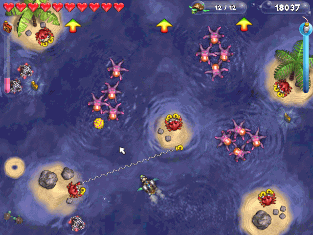 Each cleared island represents a small victory in Kröt’s campaign, and occasional story beats introduce new octopus types or environmental hazards. This episodic structure makes the game feel like a serialized adventure, with each level’s completion driving you to see how far Kröt can push back the alien invasion. The Moorhuhn lineage provides a lighthearted backdrop, hinting at a wider universe without bogging down the action.