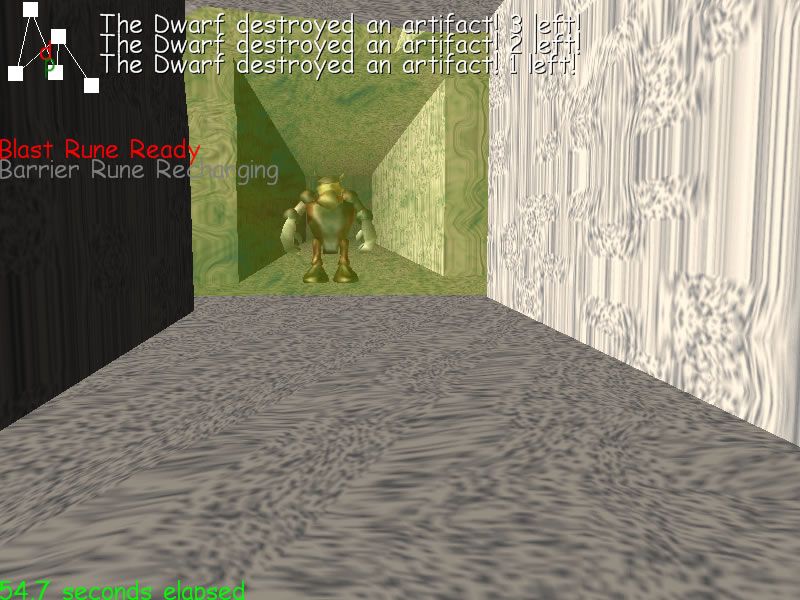 Unstoppable Dwarf: Hot Pursuit delivers a tense, first-person chase through a twisting 3D maze. As the player, your sole objective is to protect precious artifacts from a relentless, hulking dwarf bent on destruction. Movement feels smooth and responsive, allowing quick pivots and strafing to keep the dwarf at bay. A dynamic mini-map in the top-left corner keeps you aware of both your position and the dwarf’s, adding a layer of strategic planning to every decision.