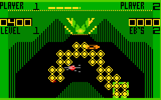 Vectron’s visual design embraces a minimalist vector aesthetic that was groundbreaking for its era—and still holds up remarkably well today. The clean, neon-style lines of each energy block stand out crisply against the dark backdrop, allowing you to track enemy movement without distraction.