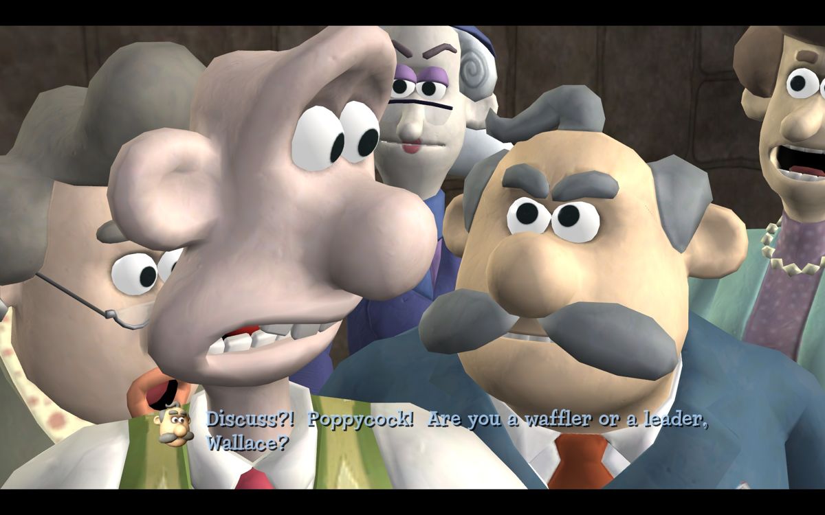 Parallel to Wallace’s romantic faux pas is the mystery of the missing deed to Picklet Thicklet Golf Club. Major Crum’s vague recollections and the Flitt family’s insistence on reclaiming the deed propel you from the workshop to the fairway and back again. Each new location contributes fresh insight into Aardman’s small-town world, populated by easily recognizable caricatures—an overzealous greenskeeper, a gossip-hunting caddie, and a pair of sneaky groundskeepers who may know more than they let on.