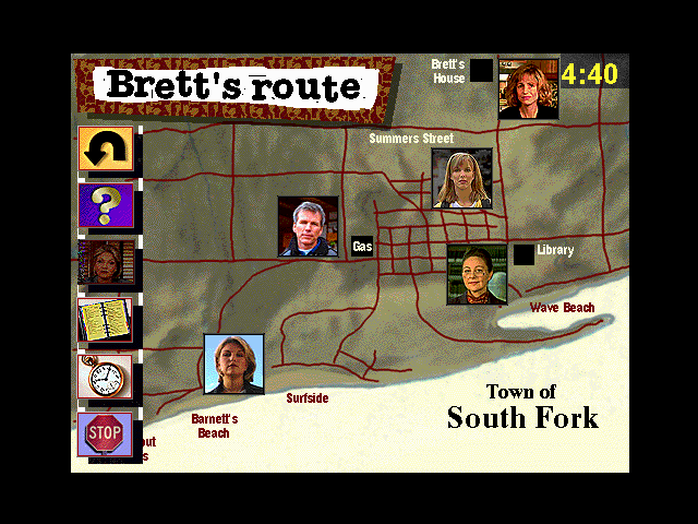 Who Killed Brett Penance?: The Environmental Surfer places you directly in the wetsuit of a rookie detective with a strict six-hour deadline to solve the crime. Time ticks away with every action you take—whether you’re canvassing the shoreline for hidden clues or cross-examining suspects at the press conference. This tension-driven mechanic keeps you constantly evaluating how long each step will take and which leads deserve your immediate attention.