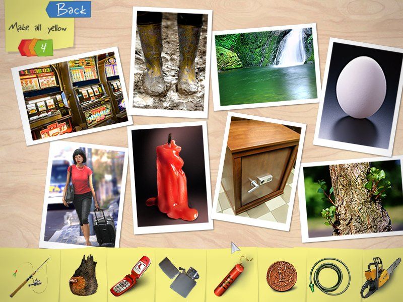Interspersed between chapters are a series of mini-games that simulate real magazine editing tasks and offer a welcome change of pace. One challenge has you matching props to photographs—think dragging a roulette wheel onto a casino shot—while another turns your cursor into a magnifier for spotting the perfect model face among dozens of snapshots. Quieter but equally engaging is a paint-mixing puzzle: combine colors in the correct sequence by following cryptic cell-phone clues. Finally, a scanning game tasks you with clicking on moving objects that morph after passing through a virtual scanner. Together, these diversions break up the hidden-object hunts and reinforce Zeal’s editorial theme.