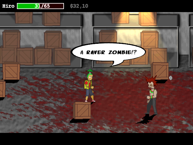 Weapon pickups are a highlight here: enemies drop everything from basic garbage cans and pans to katanas, uzis, even tuna, and sometimes you can literally throw down a knocked‐out foe as a makeshift club. This frantic scavenger approach keeps combat unpredictable. You’ll constantly weigh the trade-offs of a heavy hammer versus a quick but fragile uzi, or decide if the slow-motion ability is worth the investment. The RPG upgrade screen adds a satisfying layer of depth, encouraging players to farm zombies for cash just to unlock that one crucial stat boost.