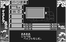 The visual presentation and audio cues work in harmony to immerse players in a roadside adventure across Japan’s highways, and the simple yet motivating storyline adds just enough character to keep the momentum going. Controls feel solid on the WonderSwan’s hardware, and the real-time customization previews keep the upgrade process both intuitive and exciting. It’s rare to find such depth on a handheld platform of this era, making Bakusō Dekotora Densetsu a standout title for aficionados of racing and customization alike.