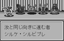 Given the WonderSwan’s hardware limitations, Engacho! makes the most of its screen by presenting clear, high-contrast sprites and tile sets. Sunzuki’s silhouette is distinct and easily tracked against the backdrop of the room, ensuring you’re never confused about your position. The Oops Five monsters each have their own unique visual flair—one hunches forward and points when mimicking, another sprints with lanky limbs when moving oppositely—so you can anticipate their next move from a glance.