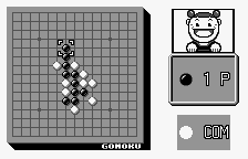 Gomoku Narabe & Reversi Tōryūmon offers two venerable board games in one cartridge, each with straightforward rules but deep strategic potential. In Gomoku Narabe, you and your opponent take turns placing black or white stones on a 14×14 grid, aiming to connect five in a row while thwarting any attempts to do the same. The simplicity of “five stones in a row” belies the tactical layers that emerge as the board fills, demanding both offensive foresight and defensive vigilance.
