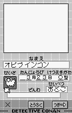 The game’s dual‐orientation design makes clever use of the WonderSwan’s screen. Investigation and exploration stages employ a horizontal layout, providing ample visual real estate for environments, dialogue boxes, and character portraits. When Conan pulls out his detective notebook, the display switches to vertical, mimicking the feel of flipping through a real notepad and allowing for a more natural, scrollable interface for your growing collection of evidence.