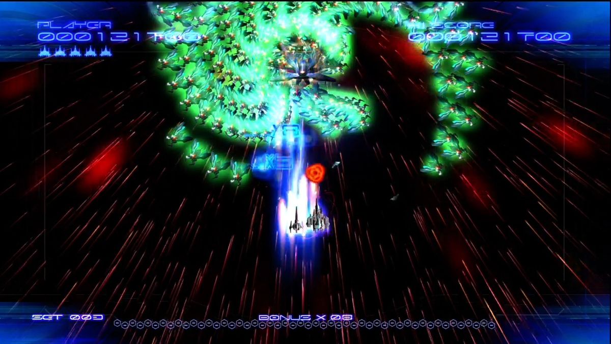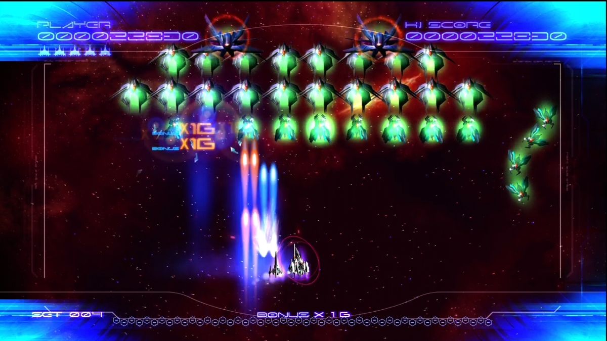 The inclusion of two detachable satellites is a standout addition. These indestructible drones can be detached from the main ship to fire in any of the four cardinal directions, allowing for complex shot patterns and area control. Whether you use them to sweep flanks, cover vulnerable zones, or unleash a concentrated barrage on a particular wave, satellite management becomes a skill unto itself, adding depth to the one-button-firing formula of the original.