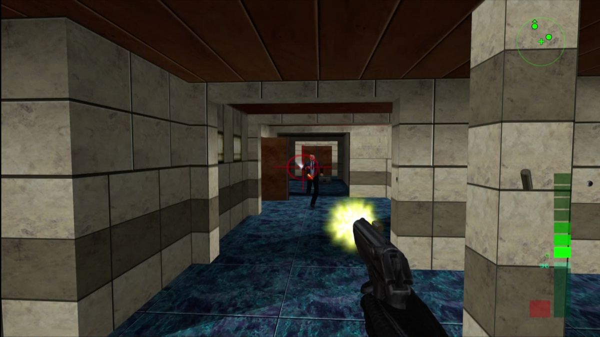 On the original N64 hardware, Perfect Dark was already a technical achievement, showcasing detailed character models, dynamic lighting, and richly textured environments that pushed the console to its limits. Fast-paced particle effects, realistic weapon animations, and the subtle glow of high-tech security systems combined to create a world that felt both plausible and cinematic—especially impressive given the era’s hardware constraints.