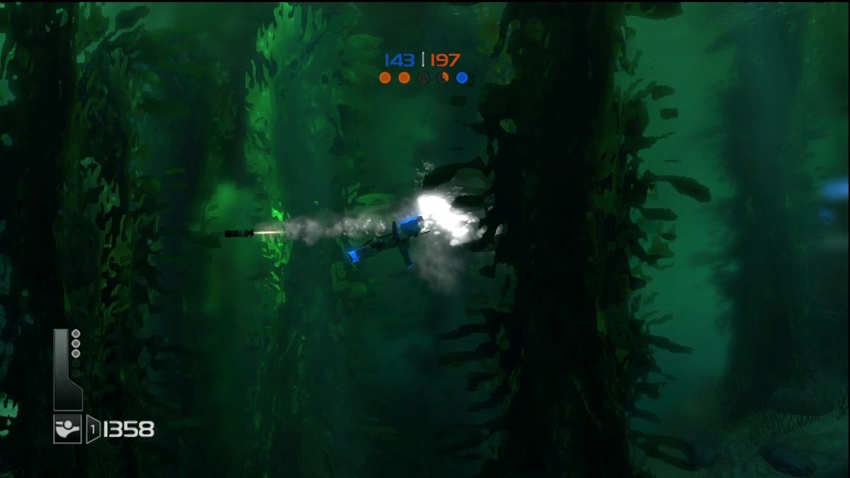 Visually, Undertow immerses you in a beautifully crafted underwater world. The game’s art direction emphasizes the contrast between eerie alien technology and the ocean’s natural beauty. Sunbeams pierce the water’s surface, illuminating coral reefs teeming with life, while distant alien turrets glow ominously in the murky depths. Particle effects—bubbles, debris, and weapon trails—add a satisfying realism to each encounter.