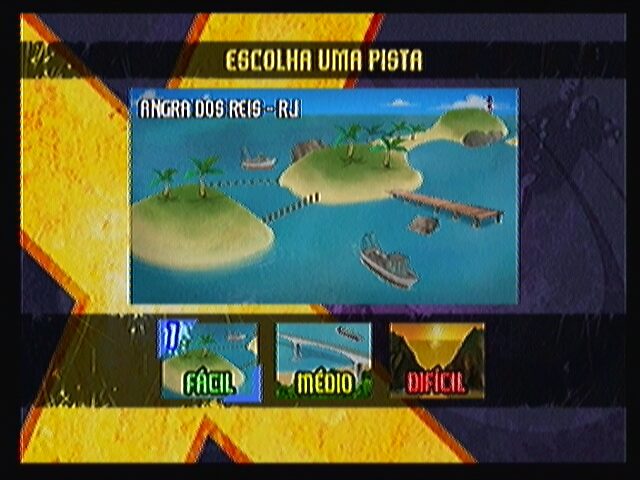 The core of the gameplay loop revolves around navigating three distinct Brazilian beach courses: Angra dos Reis (easy), Vitória (medium), and Fernando de Noronha (hard). Each track introduces new obstacles—buoys, floating barriers, and jumps—positioned to test your timing and precision. Passing on the correct side of these obstacles charges your turbo meter, rewarding skillful line choices and encouraging a risk-versus-reward style of play.