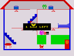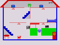 Once suited up, you head upstairs in search of a key, but the corridor is patrolled by what appears to be an alien intruder—another nod to Sinclair’s passion for pushing technological boundaries. You must learn its patrol route to slip past undetected. Finally, a return journey downstairs demands that you repeat and refine your strategy. The game’s decision to award all points only at level completion encourages replayability, prompting you to perfect your run instead of relying on mid-level checkpoints.