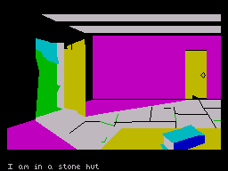 Unlike earlier entries in the series, Eye of Bain introduces optional graphical depictions of your surroundings. Typing the LOOK command summons a small, static image of the current room, rendered in charming pixel art. These visuals are modest but evocative, effectively conveying the dank torchlight of the Temple or the dusty huts of the village. They’re off by default, preserving the purity of the text-adventure experience unless you choose otherwise.