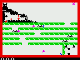 The second stage shifts the action indoors, sending you deep into the castle dungeons. Here, vampire bats swoop through dim corridors while tarantulas still pose a lurking threat. A unique twist comes from freeing trapped villagers, which adds an extra layer of purpose to your exploration. The search for the mystical doorway that leads to the final chapter keeps you pushing forward, even as enemy encounters and tight platforming sections ramp up the difficulty.