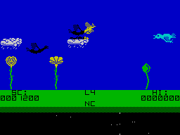 Character sprites are beautifully animated for a game of this vintage. Boris’s tiny wings beat rapidly as he darts from bloom to bloom, while the birds and wasps exhibit fluid flight patterns that demand your full attention. Even the bears—despite moving more ponderously—sport endearing walk cycles, complete with little sniffing animations when they close in on your honey stash. The overall effect is a cohesive visual package that feels lively without ever becoming cluttered.