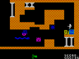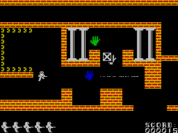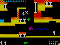 Armed with a trusty laser gun, you’ll need to manage your shots carefully: blue enemies fall with a single blast, red foes require two hits, and magenta threats demand three according to the Spectrum’s BASIC colour code. Learning to read and react to these colour cues becomes second nature as your ammo reserves dwindle and you scramble to stay one step ahead of your pursuers. The laser’s stun effect can also buy you precious seconds to dash for cover or grab an exposed key.