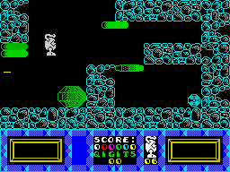 Enemies abound: twenty distinct types of baddies roam the maze, each with its own movement patterns and attack behaviors. Some patrol predictable routes, while others teleport or home in on your position, meaning quick reflexes are often necessary when you least expect an ambush. The thrust-and-jump controls let you dodge or outmaneuver foes, but poor timing can still leave you vulnerable. Coupled with the classic left/right/thrust/jump/fire scheme, the challenge feels reminiscent of 8-bit era action titles like JetPac, yet Tremor carves out its own identity through labyrinthine level design.