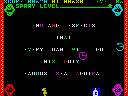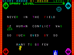 User interface elements, such as the health bar, spray-can ammo counter, and the sentence placeholder, are neatly arranged around the periphery so as not to obscure the main action. Menus are cleanly organized with playful sound cues when you make selections or unlock new categories of quotes. It all adds up to a polished presentation that never feels cluttered.