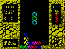 ZX Columns captures the timeless appeal of classic block‐dropping puzzle games while adding its own twists to the formula. Much like its inspiration, Columns, players must rotate and drop vertical stacks of three colored gems into a well‐defined grid. The core objective remains simple: align three or more matching gems horizontally, vertically, or diagonally to clear them from the playfield.